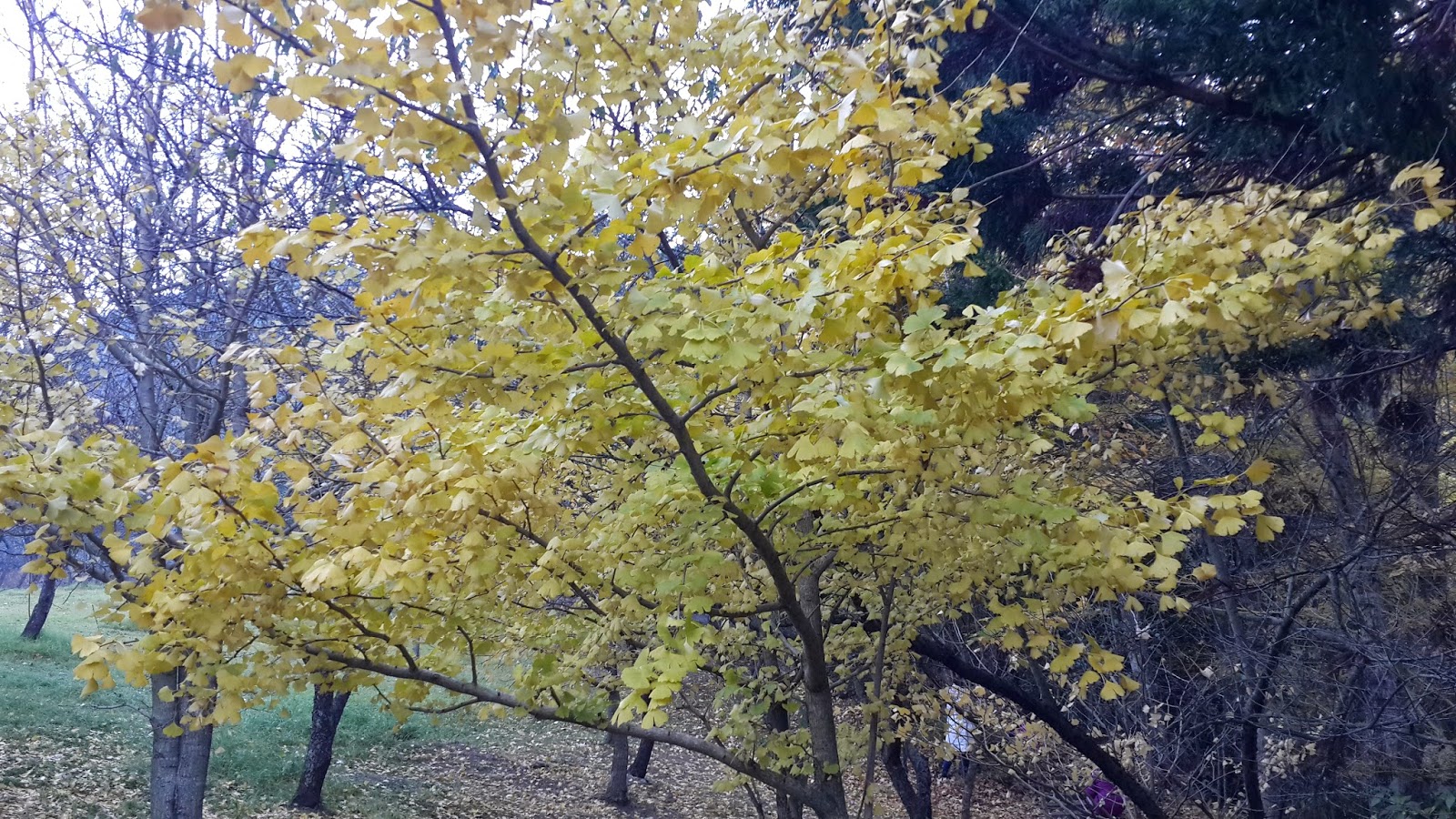 樹下鋪滿了黃澄澄的銀杏葉。