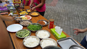 各家女主人開始準備壽司的材料囉!小朋友已經迫不及待地開始搶好位置。